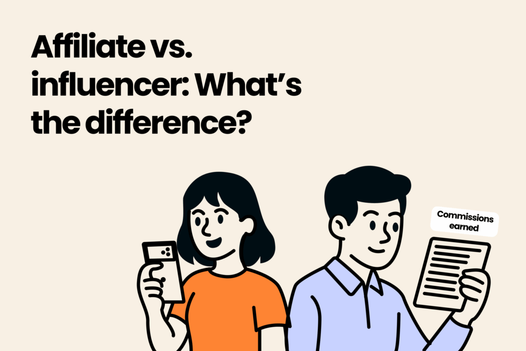 An influencer or creator is someone who has a presence on a social media platform, whether it be YouTube, Instagram, TikTok, or something else. Once they partner with a brand to sell products or services on their behalf, that’s when they become affiliates.